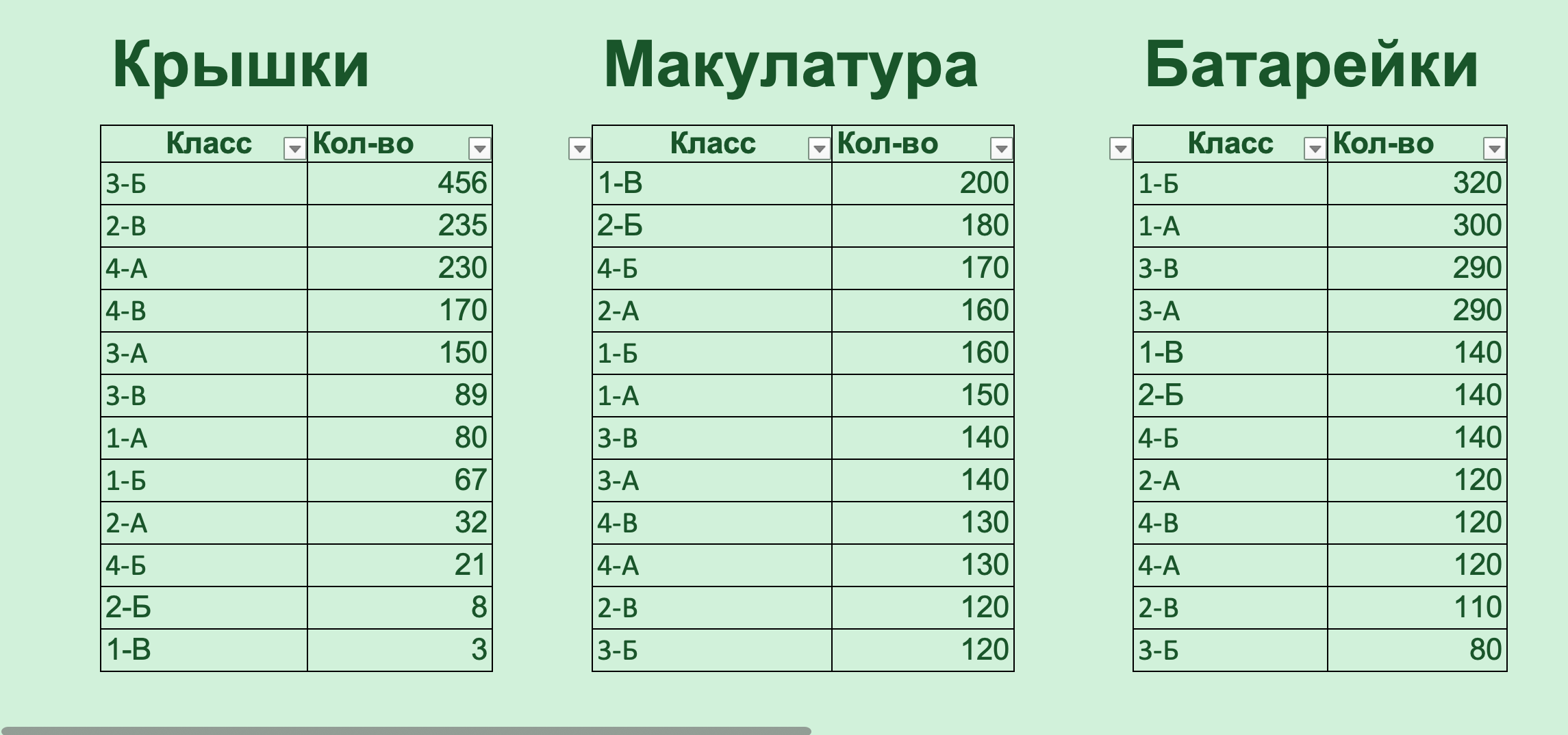 Представьте, что вы принимаете вызов от экологической организации и беретесь собрать несколько тонн газет, батареек или крышек от пластиковых бутылок. Если на видном месте вы поставите интерактивную панель, на которой в режиме реального времени будут показаны результаты каждого класса, то это привлечет внимание участников и повысит их азарт.