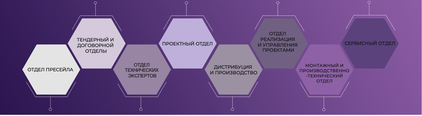 Сначала проект попадает в отдел Пресейла, где формируется его первичная концепция. Далее проект передается в отдел технических экспертов для детальной проработки: продумывается логика взаимодействия, выбираются технологии и подбирается основное оборудование, которое поможет достичь поставленных целей.