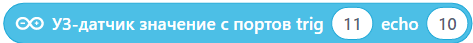 Для корректной работы программы необходимо указать значения trig и echo. Так если мы подключаем датчик к порту 1, то при использовании данного блока в поле trig необходимо указать «11», а в поле echo «10».