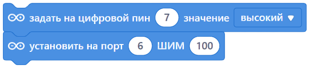 - Установить на порт … ШИМ... Данный блок позволяет установить скорость вращения двигателя.